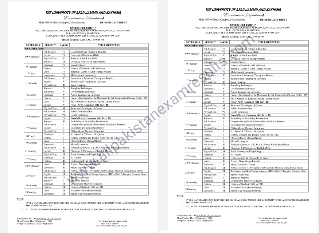 Date Sheet MA MSc Annual 2019 AJK University
